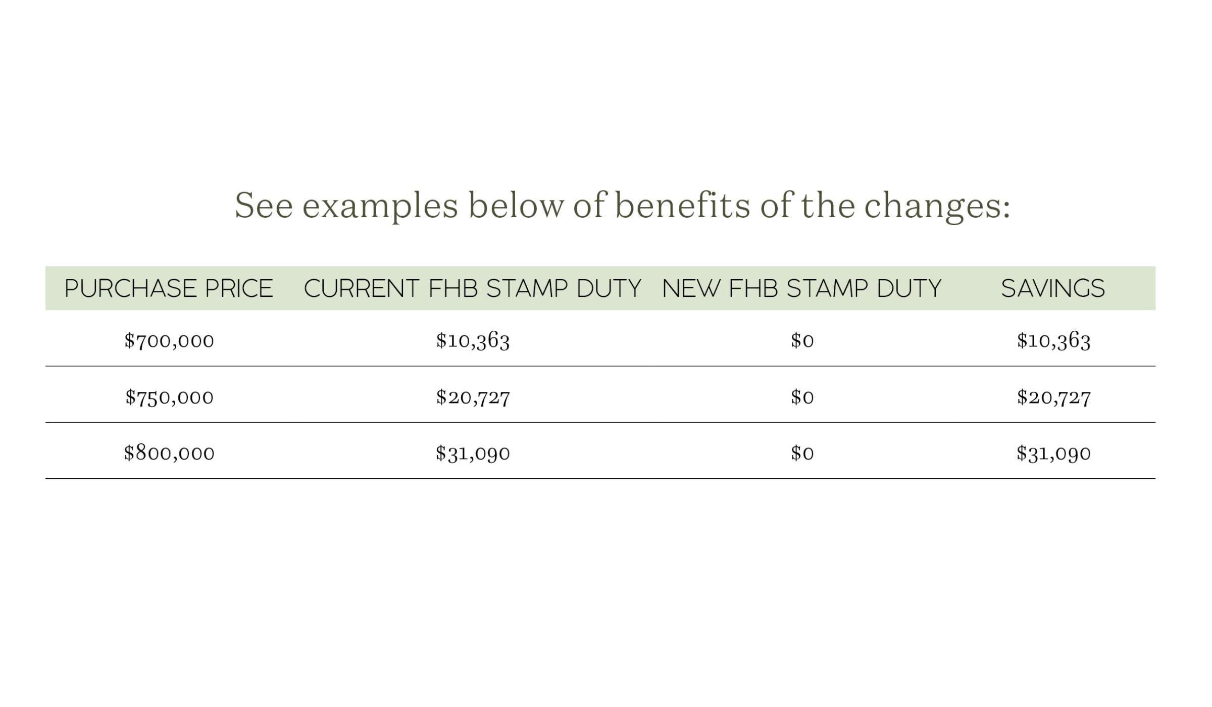 Starting from July 1, 2023, first home buyers will be exempted from paying stamp duty on purchases of 1 bedroom apartments up to $800,000. Additionally, there will be a reduced stamp duty for purchases up to $1,000,000. This policy change could lead to significant upfront cost savings for first home buyers. For instance, a buyer purchasing a property priced at $800,000 could save up to $31,000.